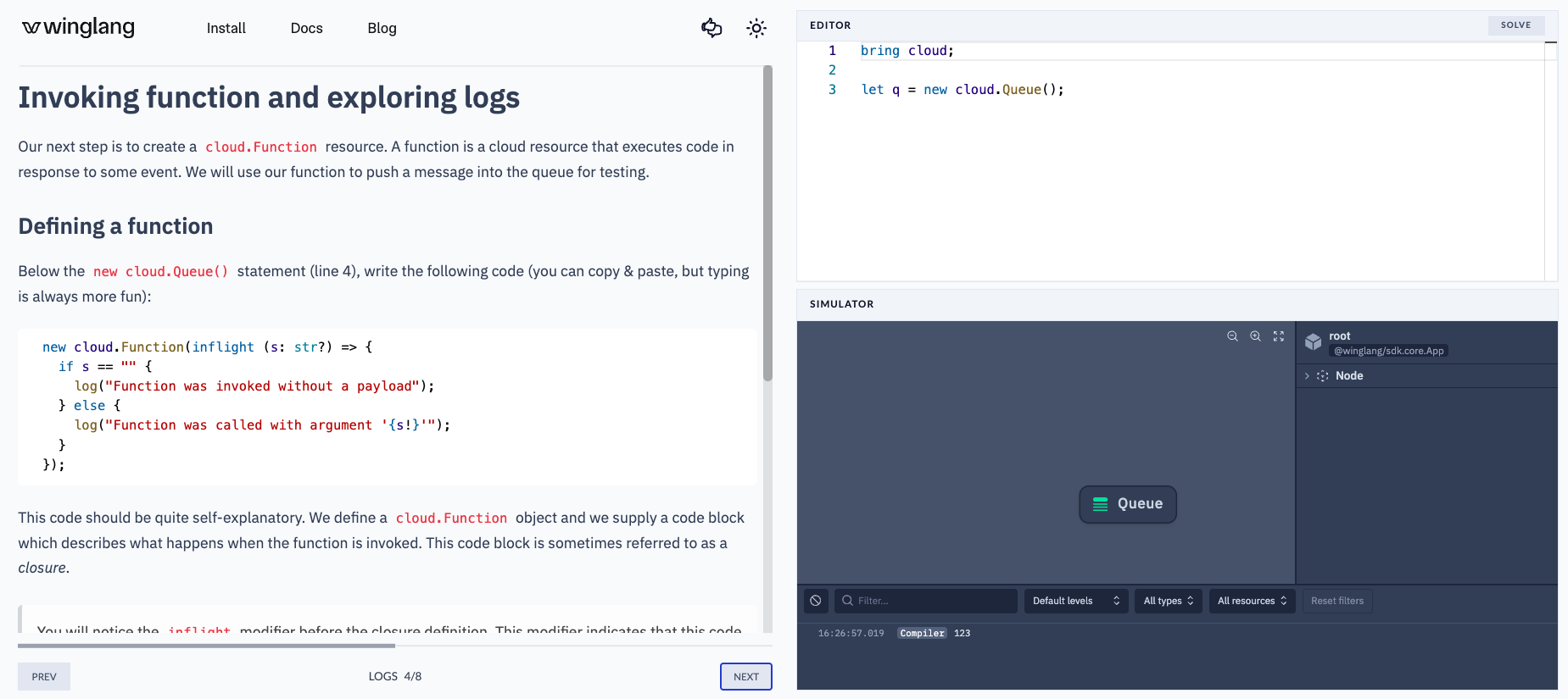 Introduction to WingA step-by-step introductory guide to the Winglang cloud programming languageInteractive tutorialView interactive tutorial →